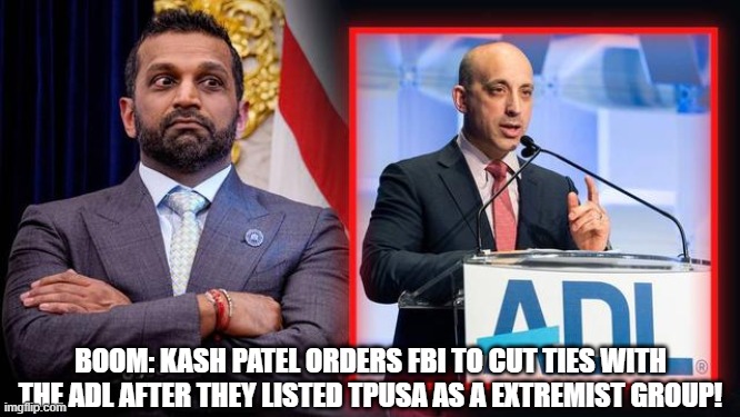 BOOM: Kash Patel Orders FBI To Cut Ties With The ADL After They Listed TPUSA As A Extremist Group! (Video)