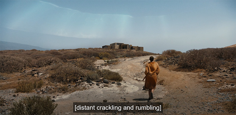 In the movie’s first minutes, Mia walks towards her home as strange trails move around in the sky. We soon learn that the New World is under an “atmospheric dome” where the State controls the weather.