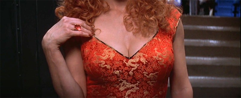 When the worker removes his hand, we see the lady in red’s ruby stone embedded in the concrete. At the very last second, it glows eerily.