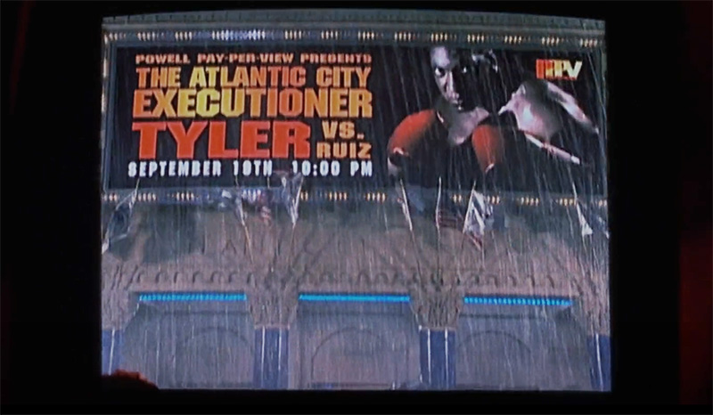 A billboard advertises the upcoming boxing fight that’ll be the site of the assassination of Charles Kirkland.