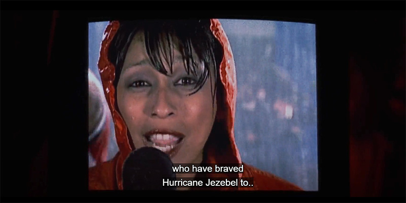 A reporter announces the coming of Hurricane Jezebel.