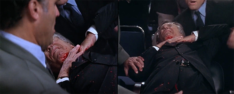 That said, those links do not occur in a movie that otherwise has nothing to do with Kirk. Snake Eyes is all about dissecting, through numerous viewpoints, the making of a high-profile assassination. Using agents scattered in the crowd and a patsy with fabricated “motivations,” the powers that be then utilise the media to propagate a specific narrative.