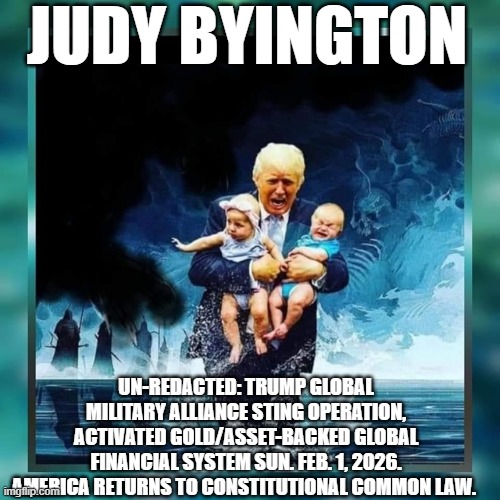 Judy Byington: Un-Redacted: Trump Global Military Alliance Sting Operation, Activated Gold/Asset-Backed Global Financial System Sun. Feb. 1, 2026. America Returns to Constitutional Common Law. 1/26/26