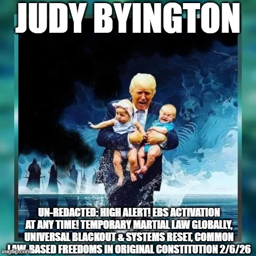 Judy Byington: Un-Redacted: High ALERT! EBS Activation at Any Time! Temporary Martial Law Globally, Universal Blackout & Systems Reset, Common Law-Based Freedoms in Original Constitution 2/6/26