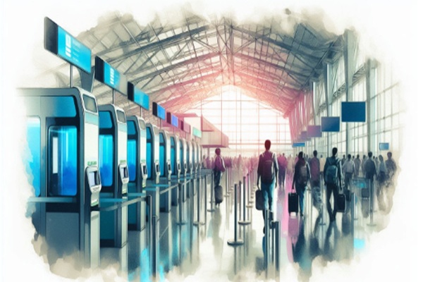 First, the traveler arrives at the border control area and is directed to a zone with self-service kiosks, especially if they are a non-EU national arriving for a short stay.