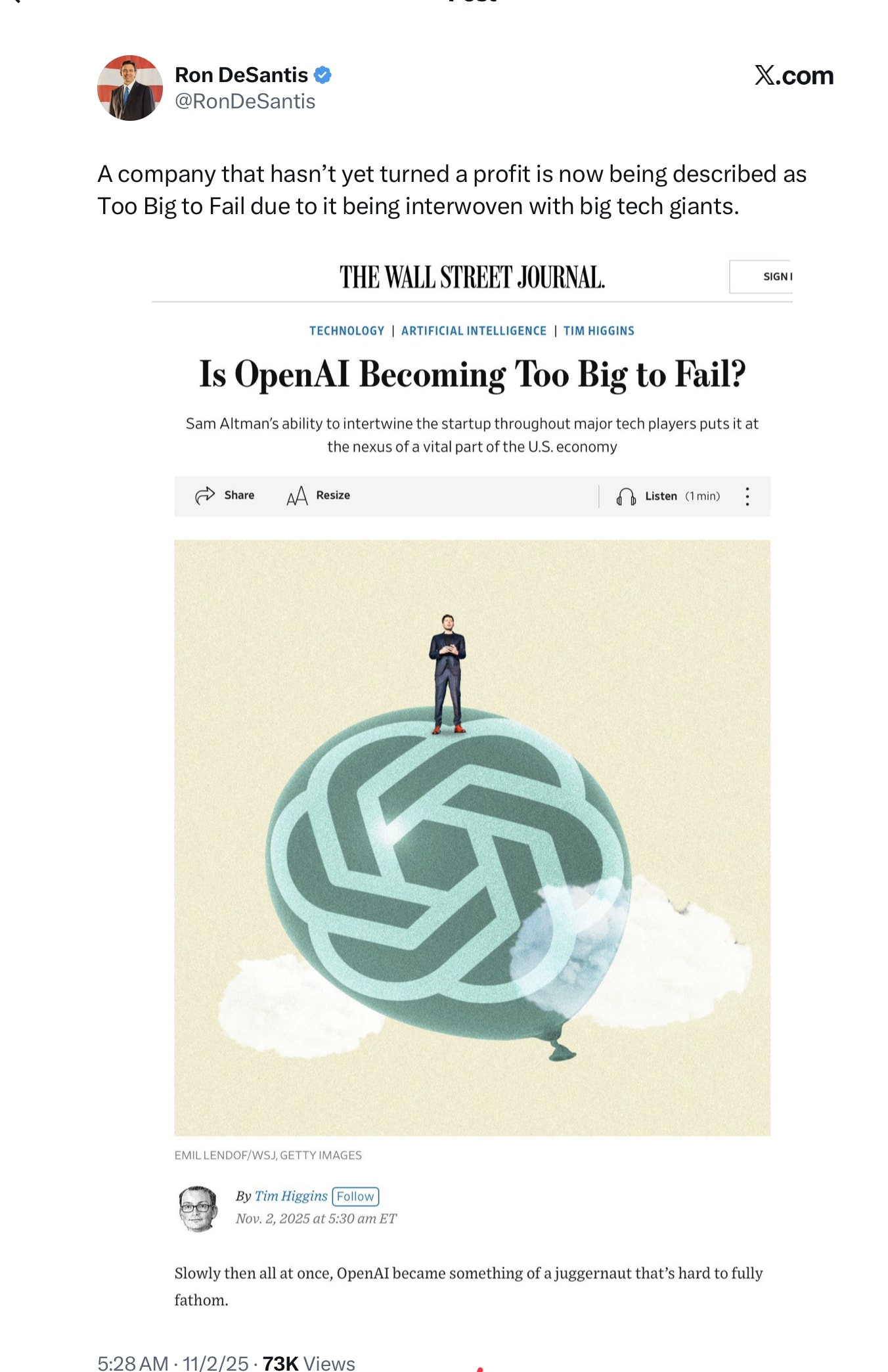 I have long been worried that OpenAI and the LLM industry was getting too big to fail. Here, for example, was a warning I issued in January: