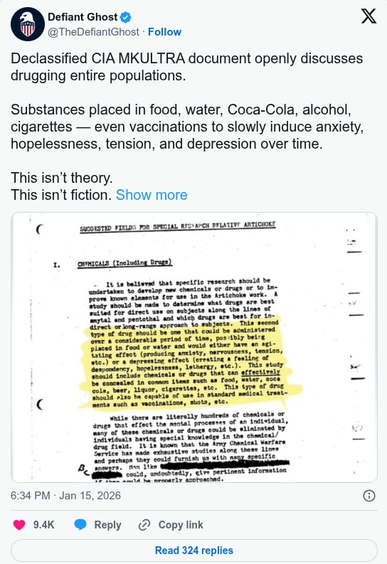 Source: https://www.hopegirlblog.com/2026/01/21/breaking-declassified-cia-mkultra-files-expose-mass-drugging-with-chemtrails-and-vaccines-to-control-entire-populations/