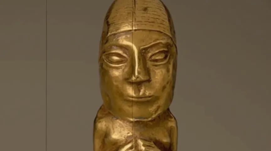 This 22-carat gold ancient Peruvian coneheaded icon, below was stolen by Robert Maxwell from the British Museum, “Because he liked it”, according to his daughter, Ghislaine, as told to Maria Farmer. This theft was but one of several other ancient trophies pilfered by Robert Maxwell from the British Museum, in order to decorate his lavish homes.