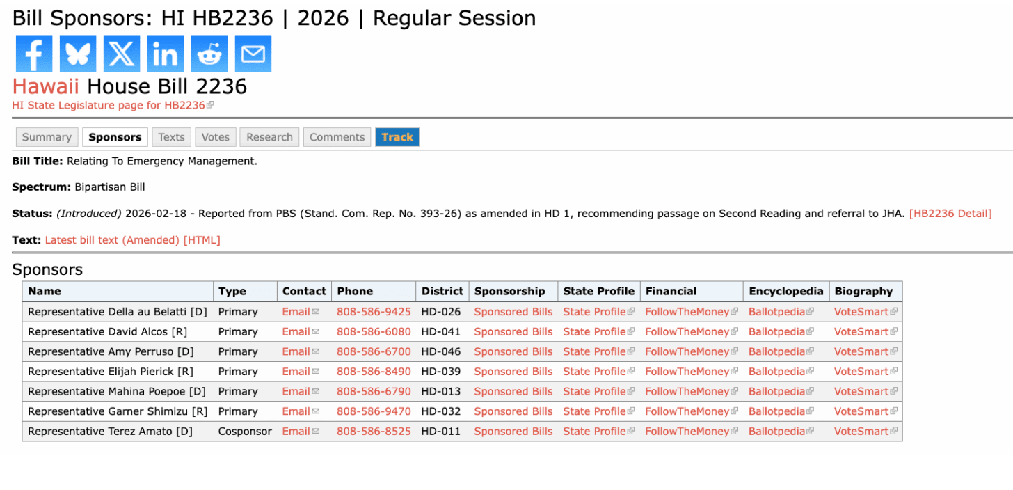 Legislative records show the bills are formally linked, with each designated as “Same As/Similar To” the other, confirming that Hawaii’s full legislature—not just one chamber—is advancing the emergency powers framework.