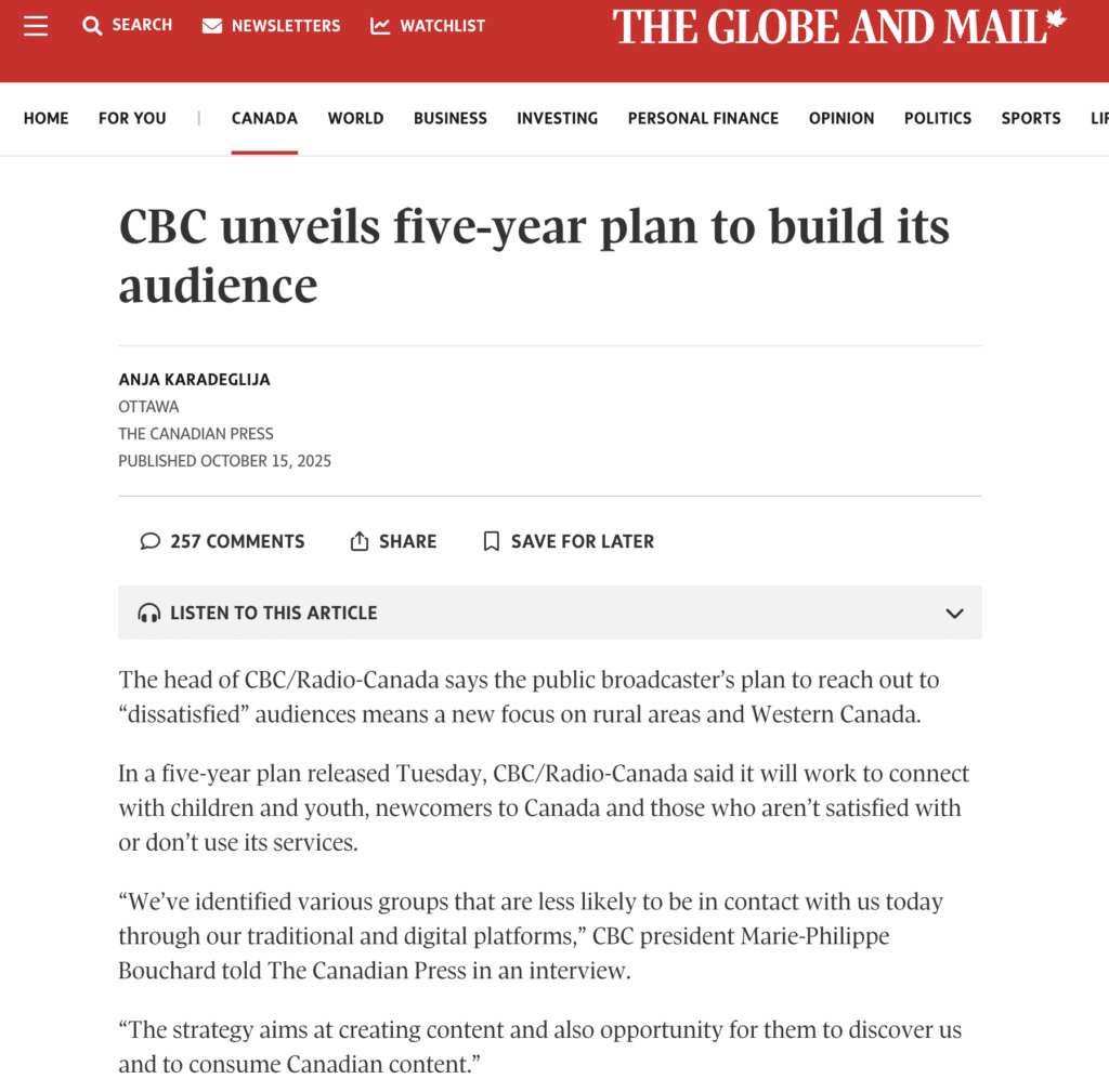 The CBC, which is Canada’s main dialectic or state narrative broadcast weapon against Canadian people, is getting more and more funding of course, to continue to attack and destroy Canadian culture in every possible way that can be conceived or defined. Recently they have likely found a way to turn what should be a problem for them into another massive win. The problem, is that fewer and fewer people watch or listen to CBC and more and more Canadians really hate it. Not nearly enough, but at least somewhat.