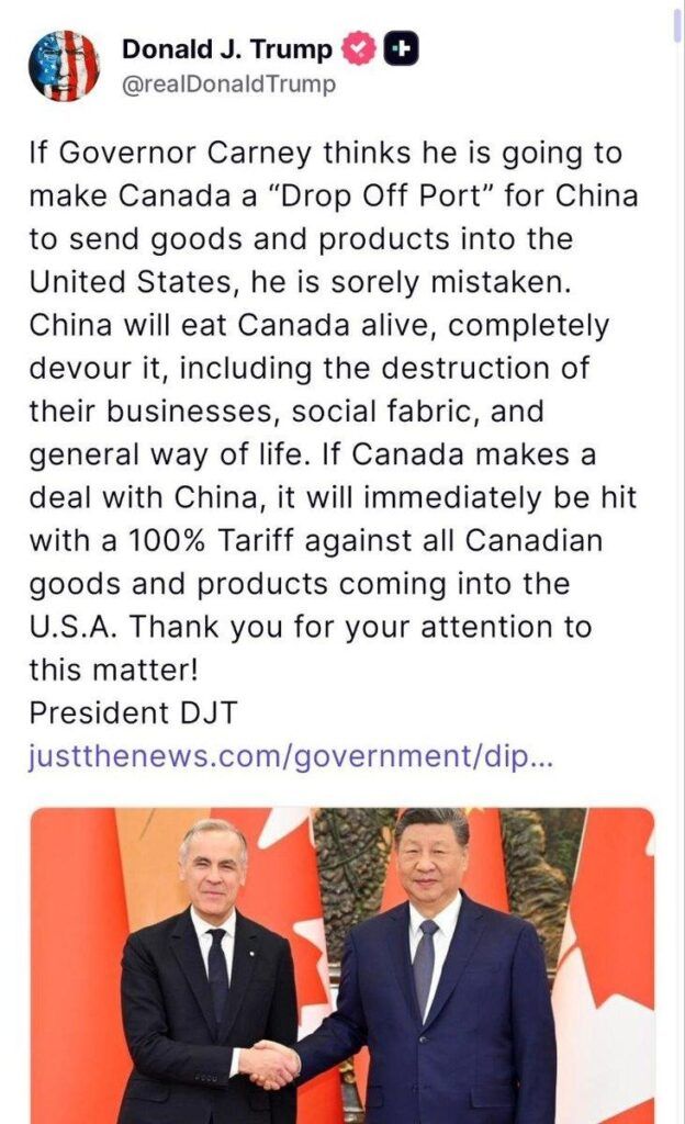 2. A couple of statements by US President, Donald Trump about Mark Carney’s Canada