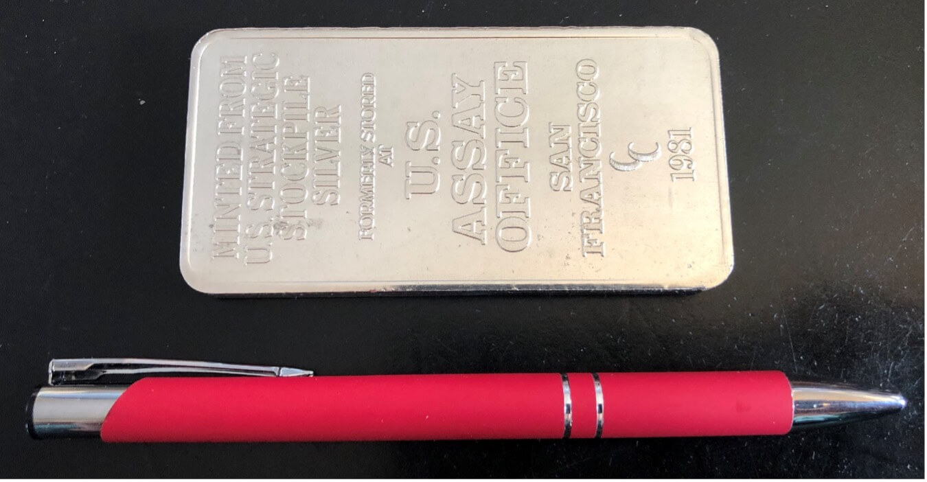 10-ounce silver ingot from U.S. strategic stockpile. BWK collection.