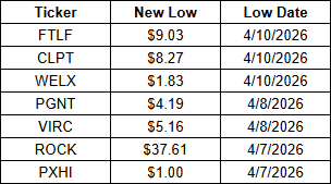 - New 52-Week Lows