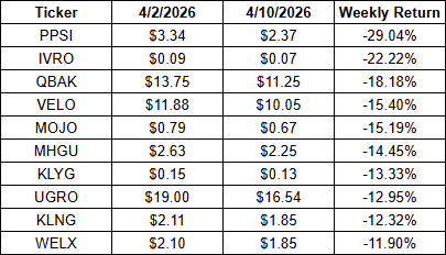 - Top 10 Losers – Weekly (April 6, 2026 – April 10, 2026)