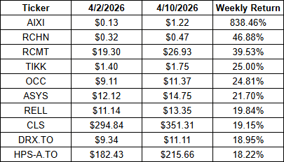 - Top 10 Gainers – Weekly (April 6, 2026 – April 10, 2026)