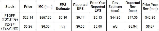 Earnings: INXSF (TSXV:INX) FTGFF (TSX:FTG)