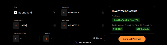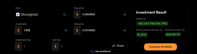 Anything can happen but I have been writing about XRP since it was .34 cents, and SHX Stronghold since it was 0.0004998. XRP has recently been as high as 3.63 and SHX 3 cents. This may not seem like much by way of price yet, but the calculator tells a different story.