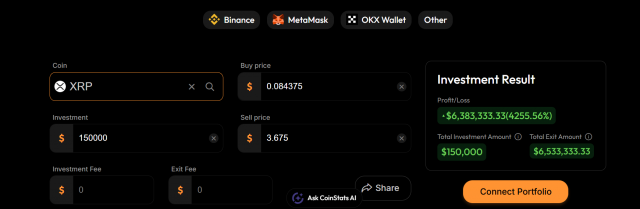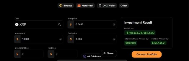 8 short years ago XRP was 4 cents. 10,000.00 invested could have profited 758,436.21.