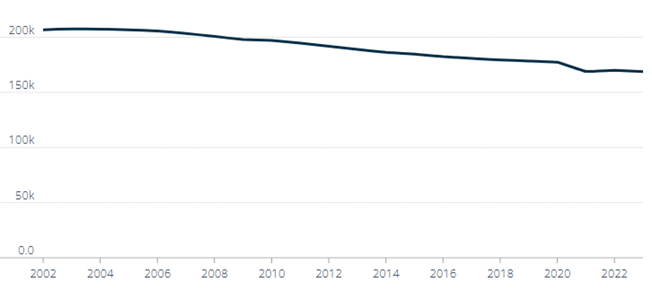 Chart 1: New Hampshire Public School Enrollment (2002-2023)