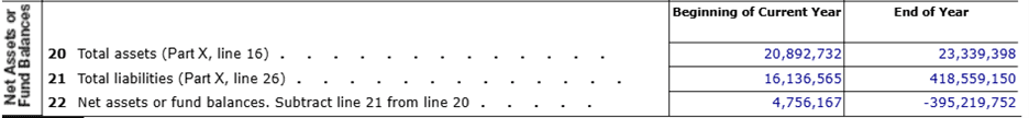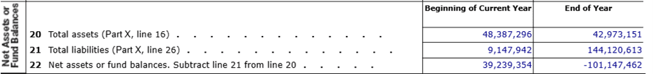 Combined, the two nonprofits reported negative net assets of nearly a half-billion dollars.