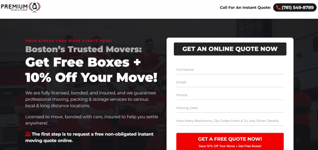 Premium Moving & Storage is yet another reliable name among the best Boston moving companies. The company has around 10 years of experience and a mid-sized team of specialists who handle the full suite of moving-related services.