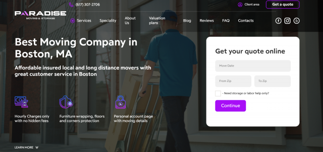 At the top of our list of the best movers in Boston is Paradise Moving & Storage. Numerous clients online have noted their high-quality services of moving and storage in Boston, mentioning the combination of affordable cost and responsibility.