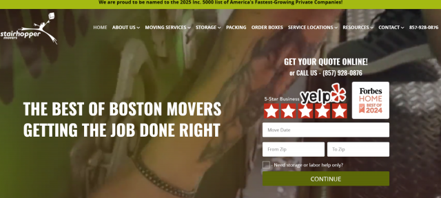 The Stairhopper Movers company has a team of the Boston best movers and around 20 years of experience. The company performs long-distance and local moves, whether you need to have a few belongings transferred or an entire household.