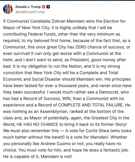 In this 4 November 2025 published video, host Dave Rubin talks with the former mayor of New York City, Rudy Giuliani, to get his take on what will happen to New York City under Mayor Zohran Mamdani. Sadly, New Yorkers went to the polls and did elect Zohran Mamdani as the new mayor of New York City.