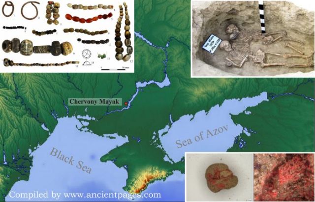 Location of the Chervony Mayak burial ground, Kherson Region, Ukraine. Credit: Dzneladze O, Sikoza D, Symonenko O, et al. Image compilation AncientPages.com