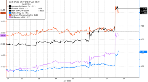 Abrahams’ research covers Definium Therapeutics, Compass Pathways, and GH Research. He said those stocks are likely to benefit the most.