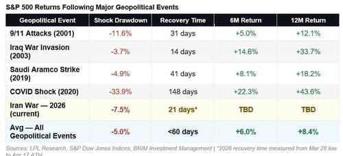 On the other hand, we must also consider the bears’ argument. The argument that this is “just a short-covering rally” with no staying power may be true, but it gets harder to sustain when you study the historical record for geopolitical shocks of comparable magnitude. Across more than 20 major events since World War II, the pattern is consistent: markets recover faster than most investors expect, and the investors who stay disciplined through the short-covering rally phase and into the recovery tend to come out ahead.
