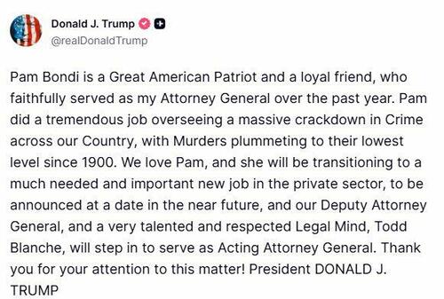 Source: https://freedombunker.com/2026/04/02/trump-fires-pam-bondi-as-attorney-general-blanche-to-be-acting-ag/